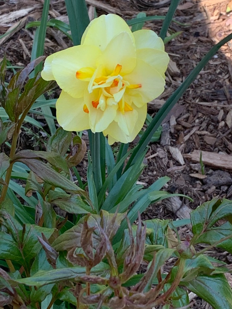 Spring flowers are everywhere except in my garden. What you see on this page is all that has bloomed so far-one daffodil and one tulip. I’m hoping that isn’t a sign of what is NOT to come. The weather is divine this April and it gives me incentive to get out there and do a little gardening.